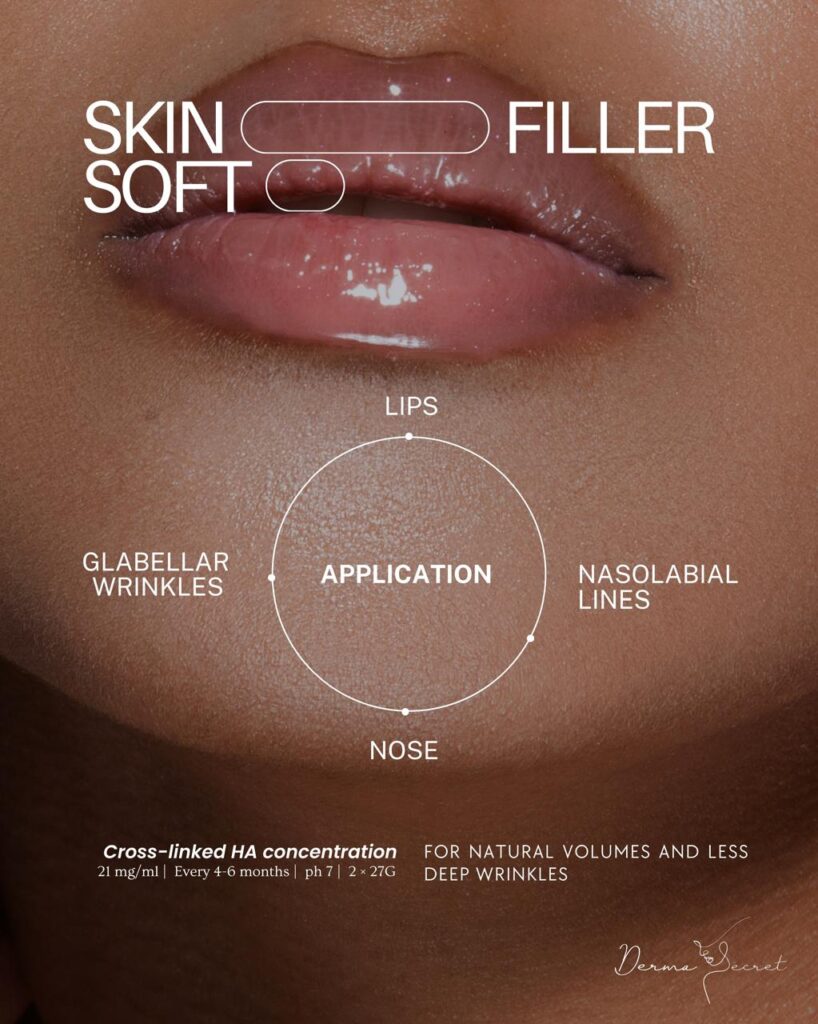 With its smooth viscoelasticity, Derma Secret is specifically designed through an innovative technology (M.M.A Technology) to have a smooth consistency that allows it to integrate seamlessly with the lips and provide a subtle, plumping effect. The results are natural and long-lasting.